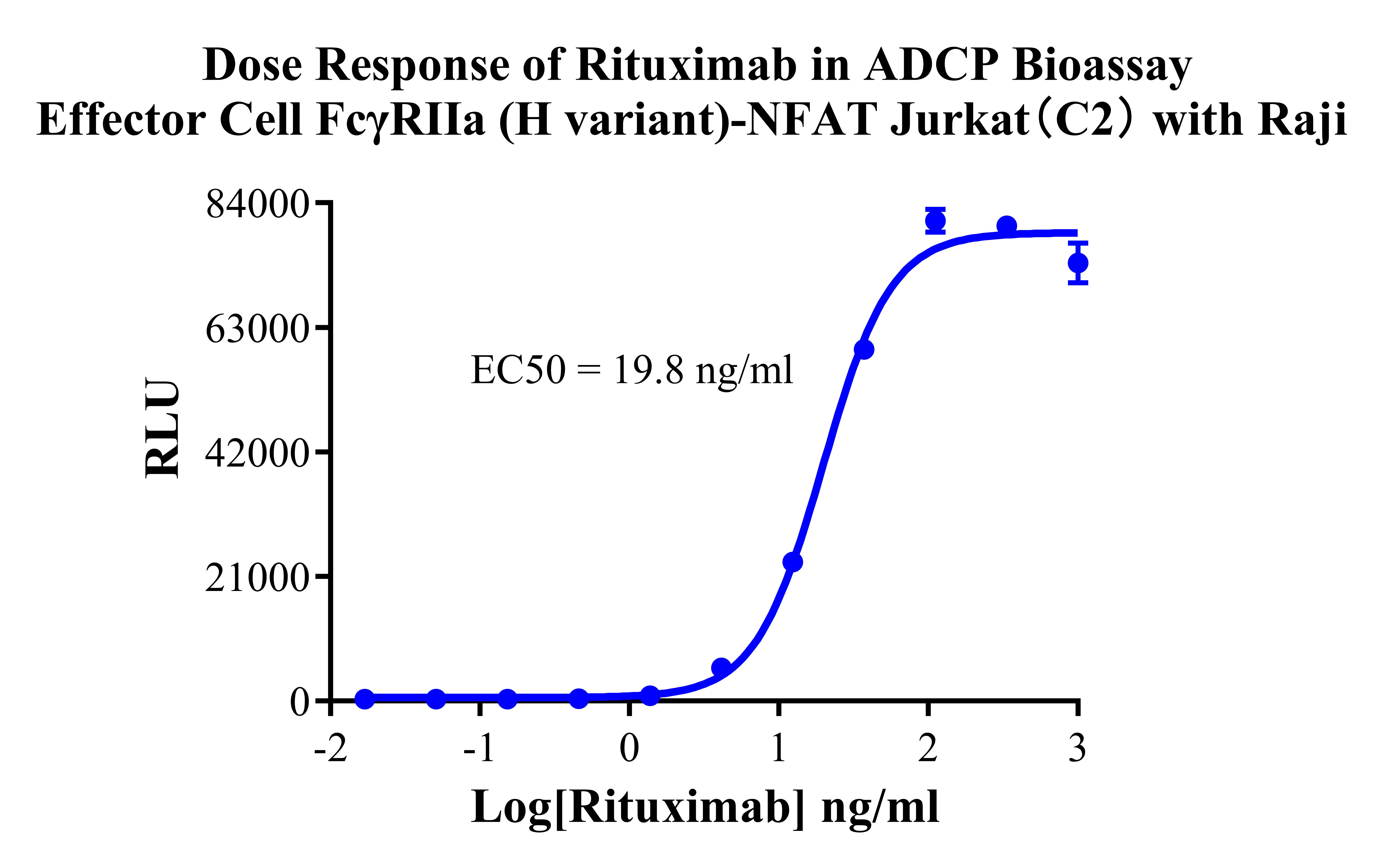 Figure 2. Dose Response of Rituximab in ADCP Bioassay Effector Cell FcγRlla (H variant) -NFAT Jurkat (C2) with Raji. |
