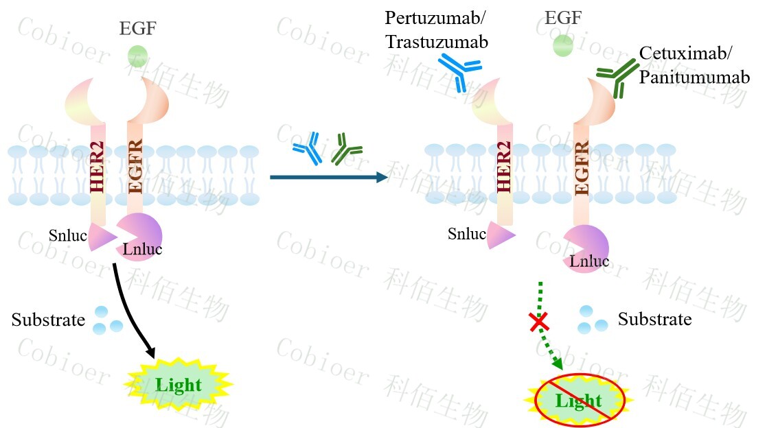 EGFR&ERBB2 Dimerization CHO 報告基因藥靶模型很好的模擬了體內 EGFR&ERBB2 的信號轉導過(guò)程,原理見(jiàn)下圖所示。![]() Figure 1. EGFR&ERBB2 Dimerization CHO 細胞模型原理圖 |