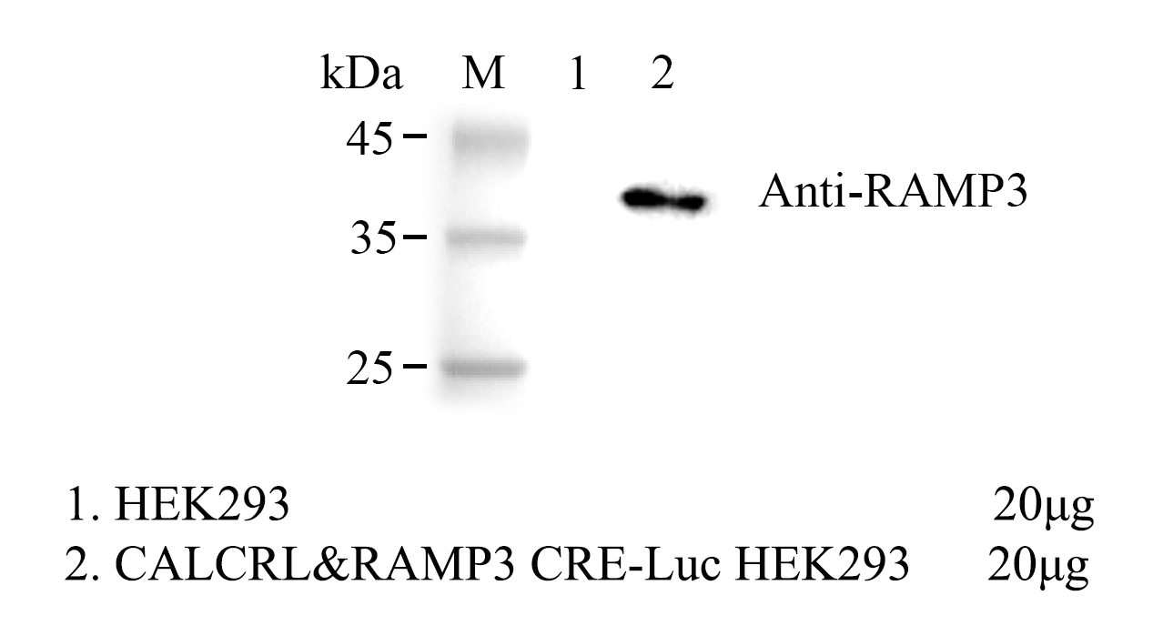 | 降鈣素基因相關(guān)肽(CGRP)家族包括 CGRP 本身、降鈣素(CT)、腎上腺髓質(zhì)素 (AM)和胰島淀粉樣肽(AMY)。 Adrenomedullin 2(AM2),亦稱(chēng)中間腎上腺髓質(zhì)素,是一種由 52 個(gè)氨基酸構成的多 肽激素,廣泛表達于心血管、腎臟及脂肪等組織,作為一種強效的血管舒張因子,在調節 血壓、體液平衡及抑制炎癥反應中發(fā)揮著(zhù)關(guān)鍵作用。CALCRL(也稱(chēng)為 CLR 或 CRLR)是 核心的 G 蛋白偶聯(lián)受體單元,但自身無(wú)功能性;RAMP3 作為必需的伴侶蛋白,不僅協(xié)助 CALCRL 轉運至細胞膜,更決定了該復合物特異性地識別并高親和結合 AM2,從而形成完 整的腎上腺髓質(zhì)素 2 型受體。 配體結合后,復合物與 G 蛋白相互作用,Gαs 亞基從復合物中分離并激活腺苷酸環(huán)化 酶,產(chǎn)生 cAMP。細胞內 cAMP 濃度升高刺激 cAMP 依賴(lài)的信號通路,最終導致轉錄因子 cAMP 應答元件結合蛋白(CREB)與 CRE 啟動(dòng)子結合,誘導基因表達。 |