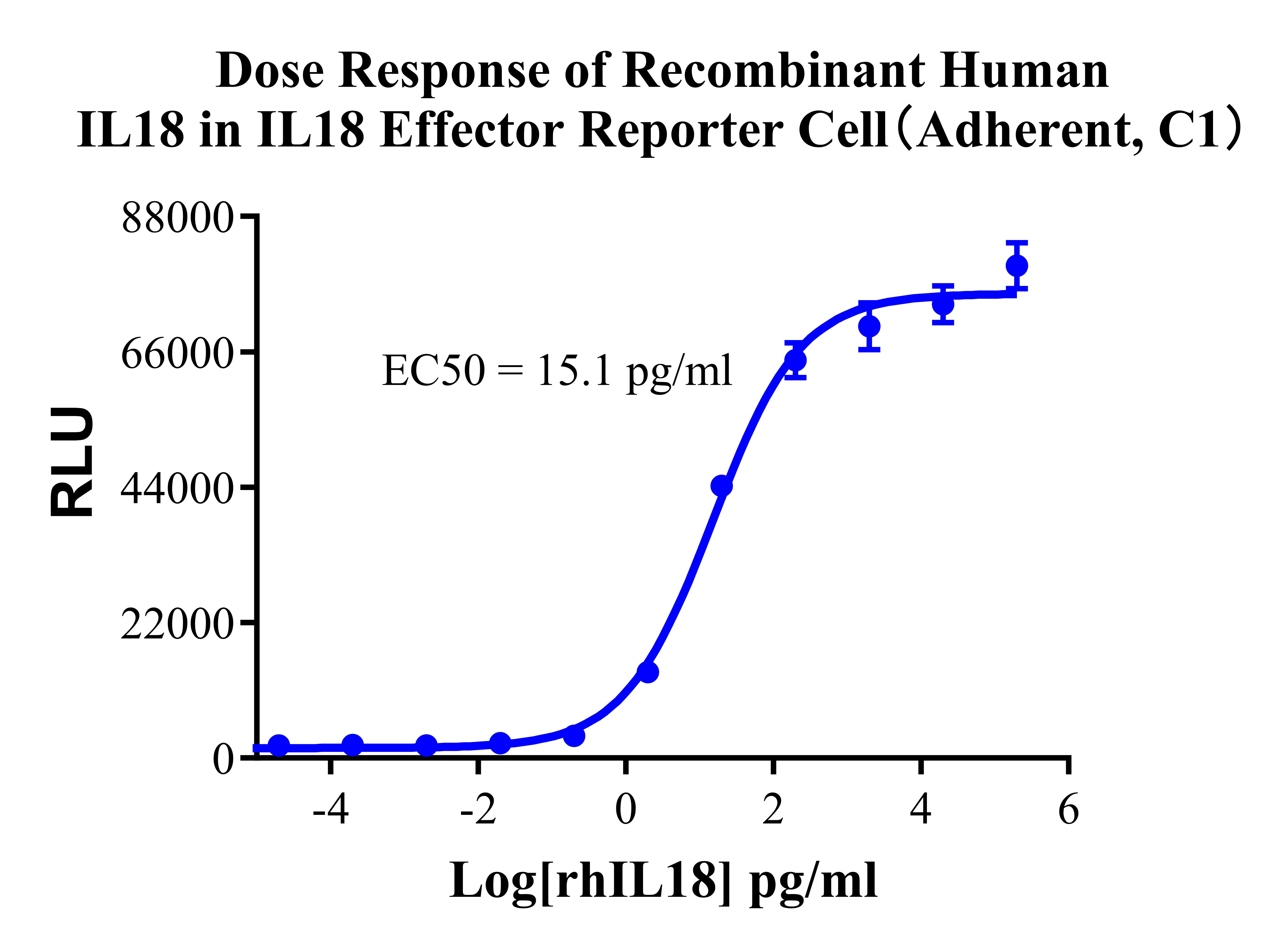 ![]() Figure 1. Dose Response of Recombinant Human IL18 in IL18 Effector Reporter Cell(Adherent, C1). |