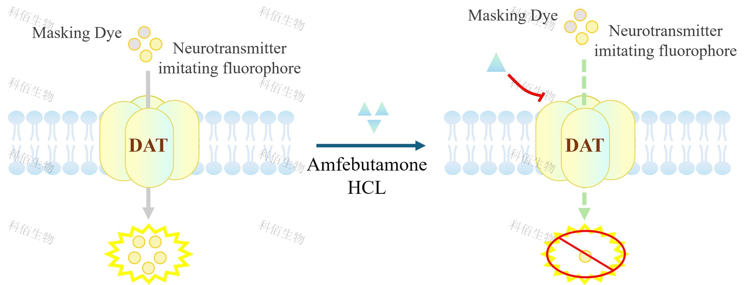DAT(SLC6A3) CHO 藥靶模型很好的模擬了體內轉運蛋白調節神經(jīng)元信號傳導,原理見(jiàn)下圖所示。
