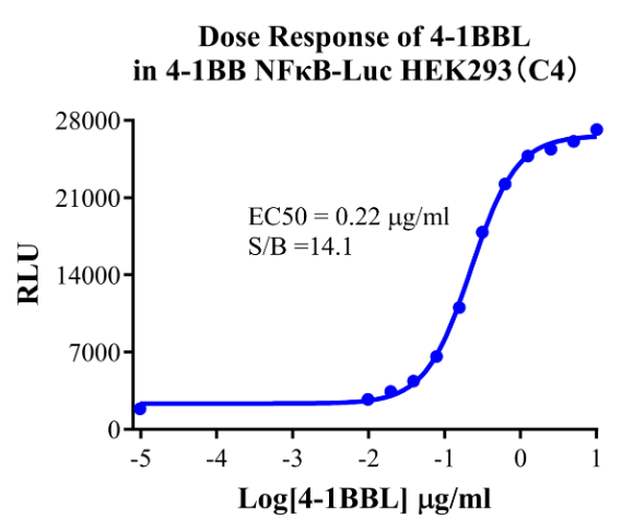 Figure 6. Detect Luciferase assay by Ultra Luciferase Detection Kit CBPH0001(we strongly suggest to purchase from Cobioer). Dose Response of 4-1BBL in 4-1BB NF-κB-Luc HEK293(C4).